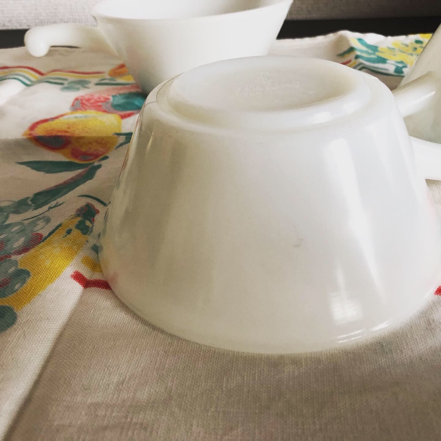 Fire King ファイヤーキングのミルクグラス ホワイトのワンハンドルキャセロール3個セットです。大変綺麗な状態で、使用された形跡はありません。欠けやチップはありませんが、アメリカのアンティークショップでの長い保管期間のため擦れた跡があります。あまり目立ちません。(写真でご確認ください)