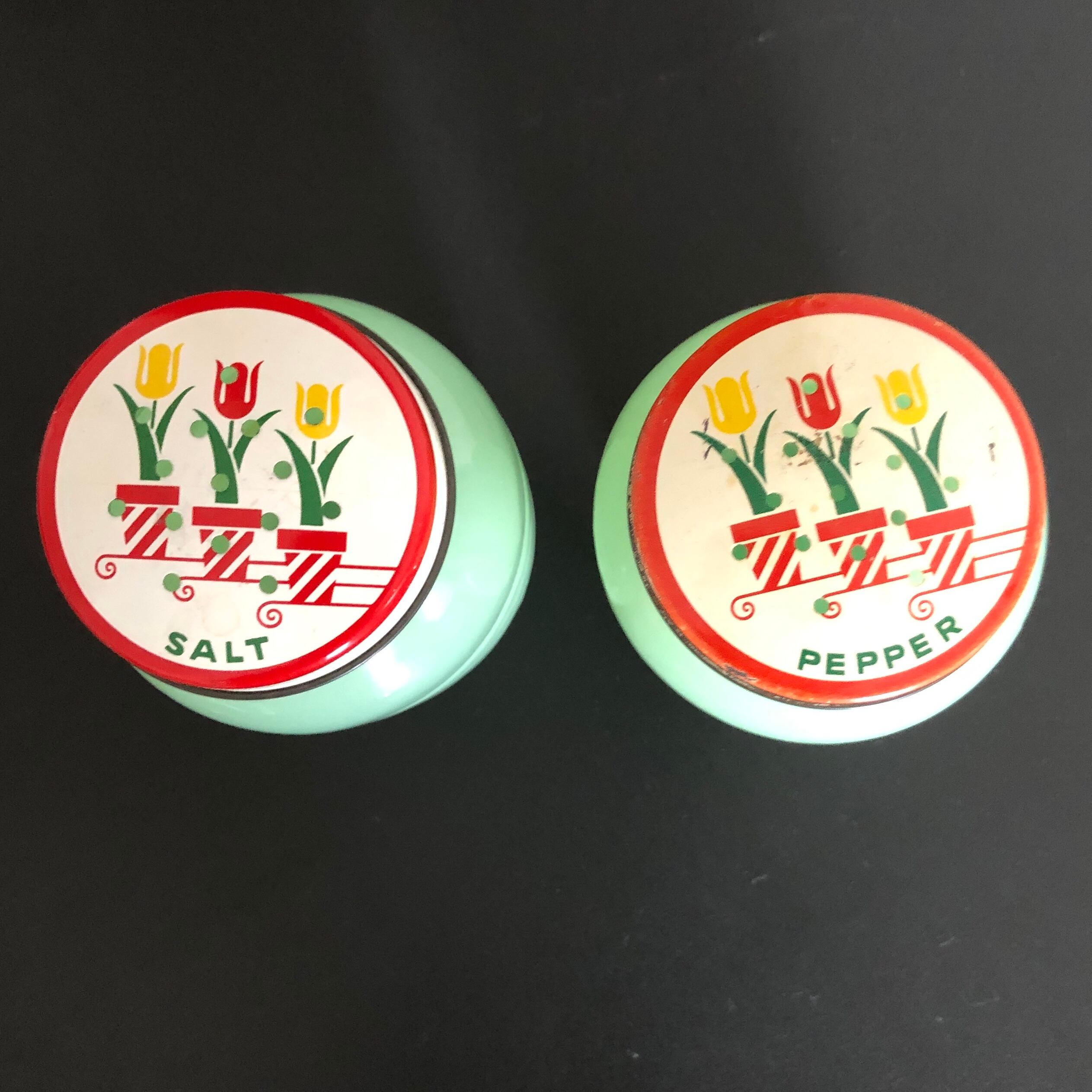 大変綺麗な状態で、使用された形跡はありません。欠けやチップはありませんが、蓋のサビが着色しています。(写真でご確認ください)その他はツヤがあり大変美しく、ヴィンテージであるのにもかかわらず、とてもミントなコンディションです。ソルトとペッパーの蓋の色が経年で微妙に違います。